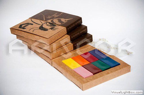 - Amarelo limão - Laranja - Vermelho escuro - Violeta - Azul celeste - Verde esmeralda - Castanho escuro - Rosa
