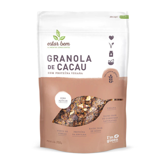 Ingredientes: Aveia prensada, isomalto oligossacarídeo (Xaropede Tapioca), cranberry, chocolate diet 70% cacau, castanha-do-Pará, cacau em pó, óleo de girassol, proteína de ervilha, semente de girassol, semente de linhaça e edulcorante glicosídeos de esteviol (Stevia).