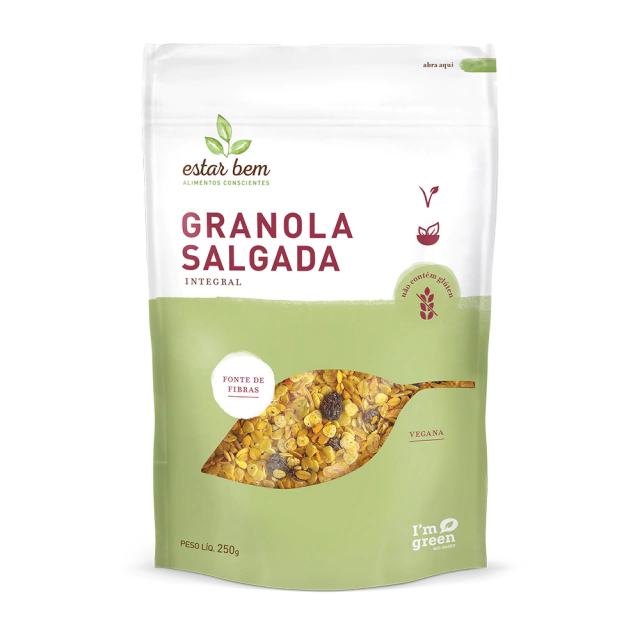 A Estar Bem está sempre em busca de novas alternativas de alimentação prazerosas e saudáveis, e por isso desenvolvemos um produto naturalmente funcional, rico em fibras, betacaroteno e fonte de ômega 3 e 9. Nossa Granola Salgada pode ser consumida na salada e também como um complemento para as refeições triviais do dia a dia.